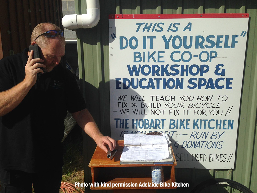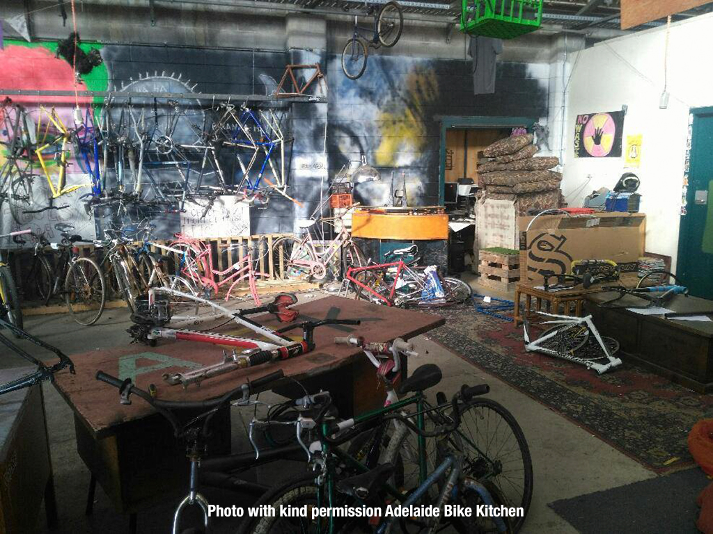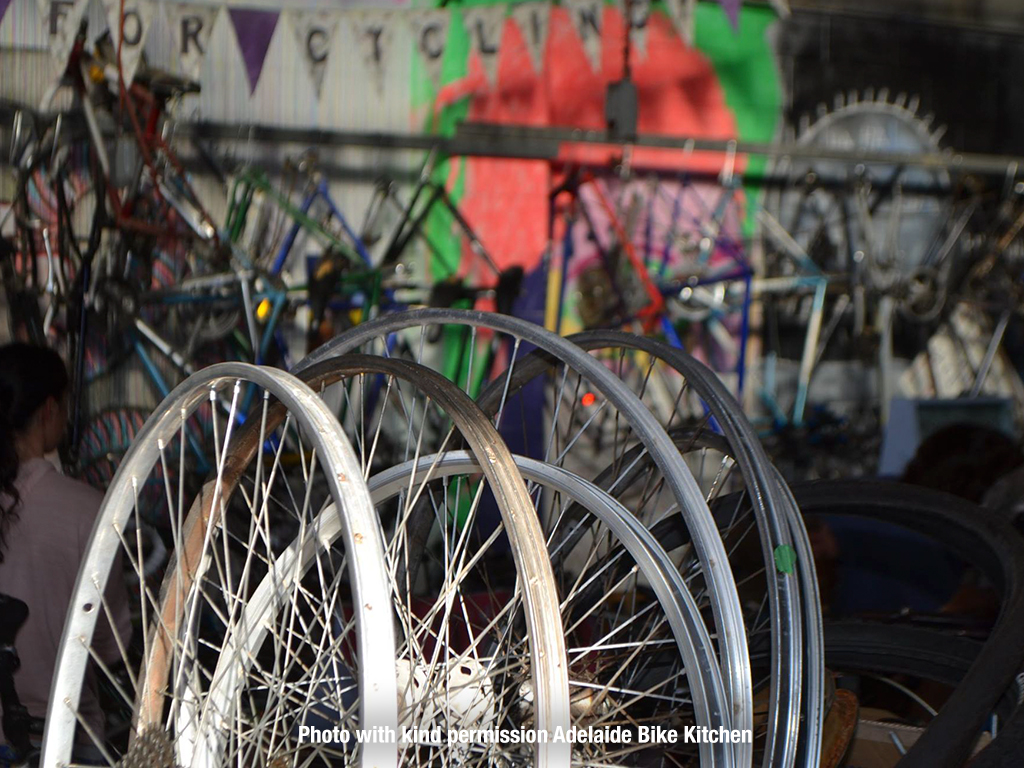 The idea of the Adelaide Bike Kitchen is that they teach riders how to maintain and repair their own bike. Bike owners can go along to a Adelaide Bike Kitchen session and they have the tools, parts and expert guides to keep their bikes running smoothly and safely.